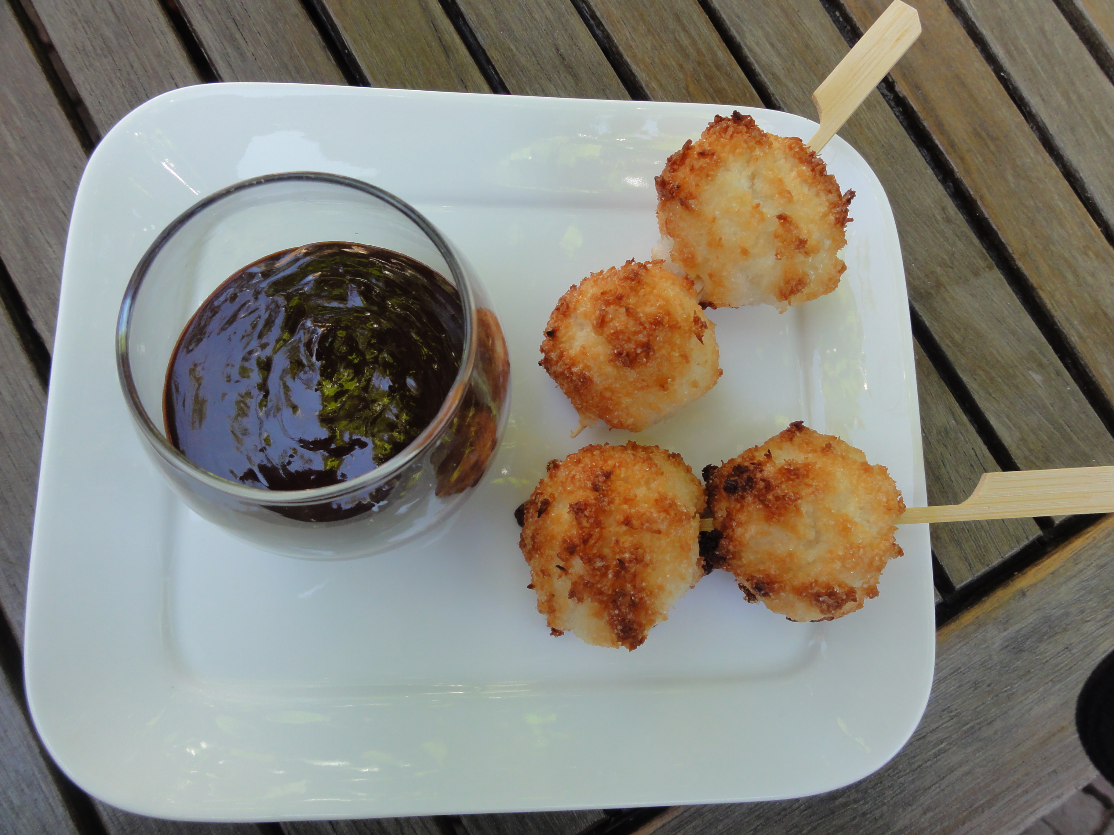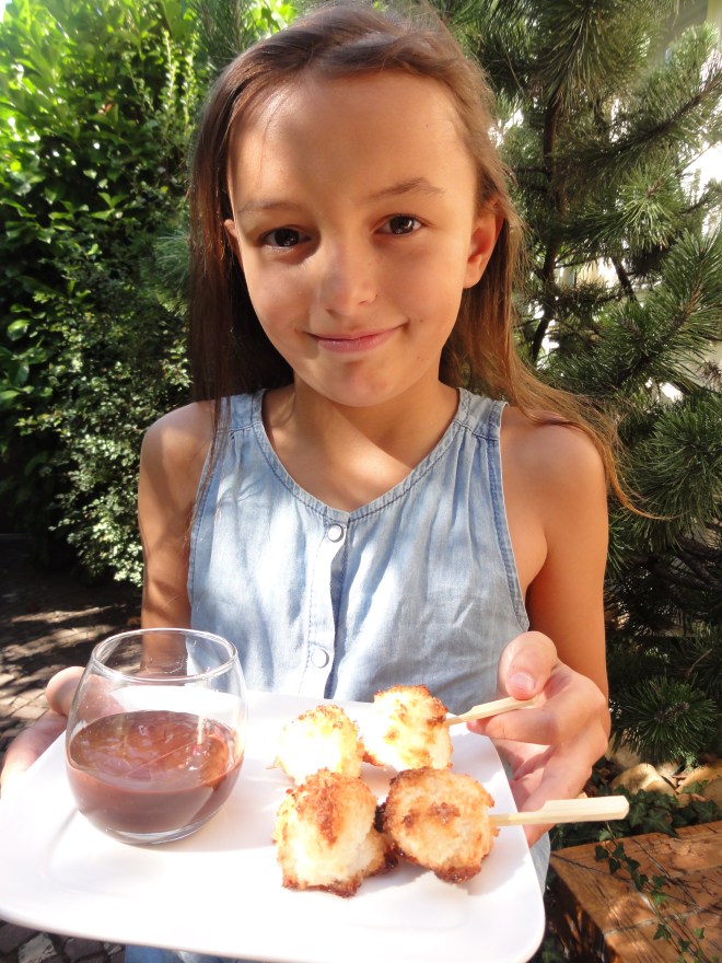Une fois la cuisson des boules coco terminée, laisser les reposer 5 min avant de les mettre en brochette.