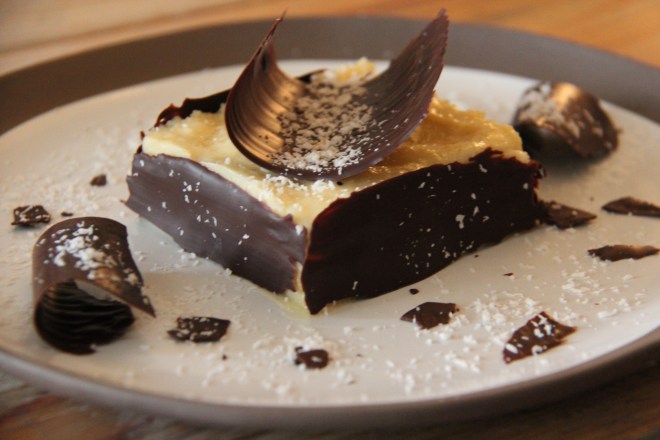 Dans une casserole, déposer le lait, le beurre et l’agar agar. Porter à ébullition en remuant, puis ajouter le chocolat blanc et la coco râpée. Une fois le tout fondu, retirer du feu et laisser refroidir.