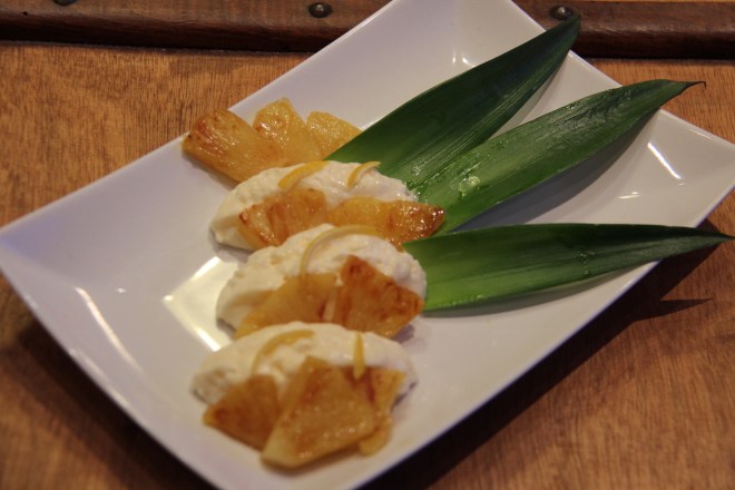 Chaud-froid Ananas flambé et mousse mascarpone