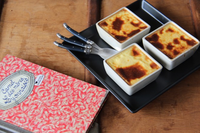 Nous avions envie d’une recette nous replongeant en enfance, Séverine a aussitôt dégainé son tablier ainsi que son « carnet des mères lyonnaises » pour un dessert indémodable : le flan à l’ancienne !
