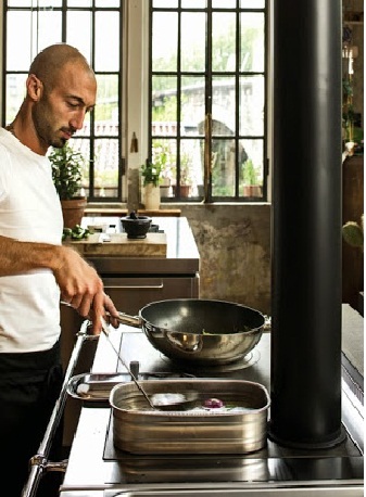 Et pour cela, il faudrait une cuisine unique, spacieuse et de caractère. Mon premier regret, lorsque j’ai quitté les fourneaux de mes restaurants, c’est justement mon piano. La mélodie de ma cuisine quotidienne ne sonnait plus pareil… Et puis j’ai rencontré Dominique Charby, un passionné de cuisine et surtout excellent fournisseur de pianos destinés aux particuliers, il m’a vendu du rêve ! Il distribue notamment la marque Steel, des fourneaux semi-pro proposant diverses combinaisons (grill barbecue, four vapeur, 2 fours, 6 brûleurs, 6 foyers inductions,….). Autre marque de caractère que Dominique distribue la marque Corradi, je suis totalement sous le charme de leur piano alliant modernité à un look résolument rétro…