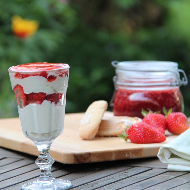 Le temps pour moi de tailler mes fraises en lamelles et de tremper les boudoirs dans le jus de pêche.